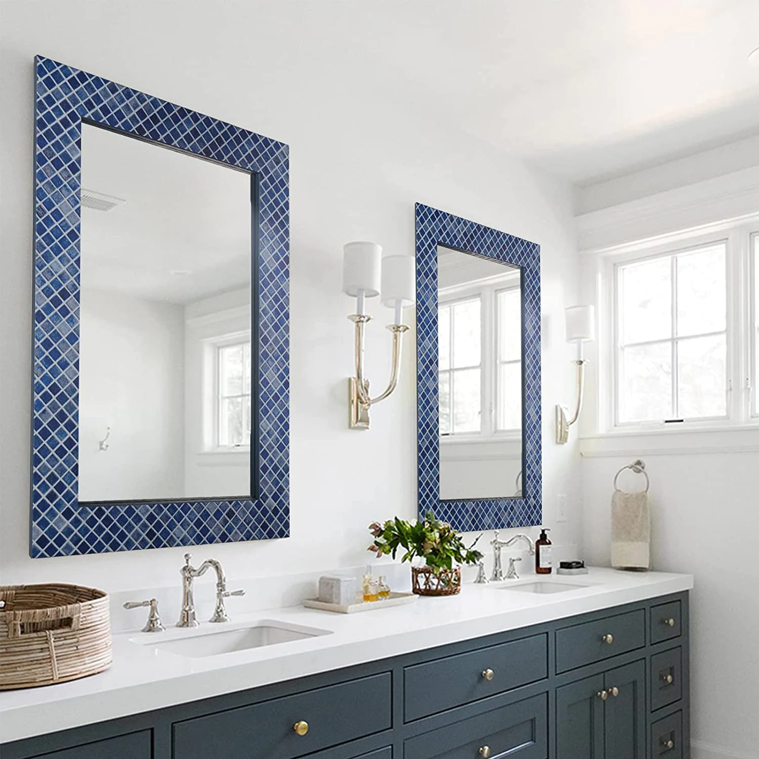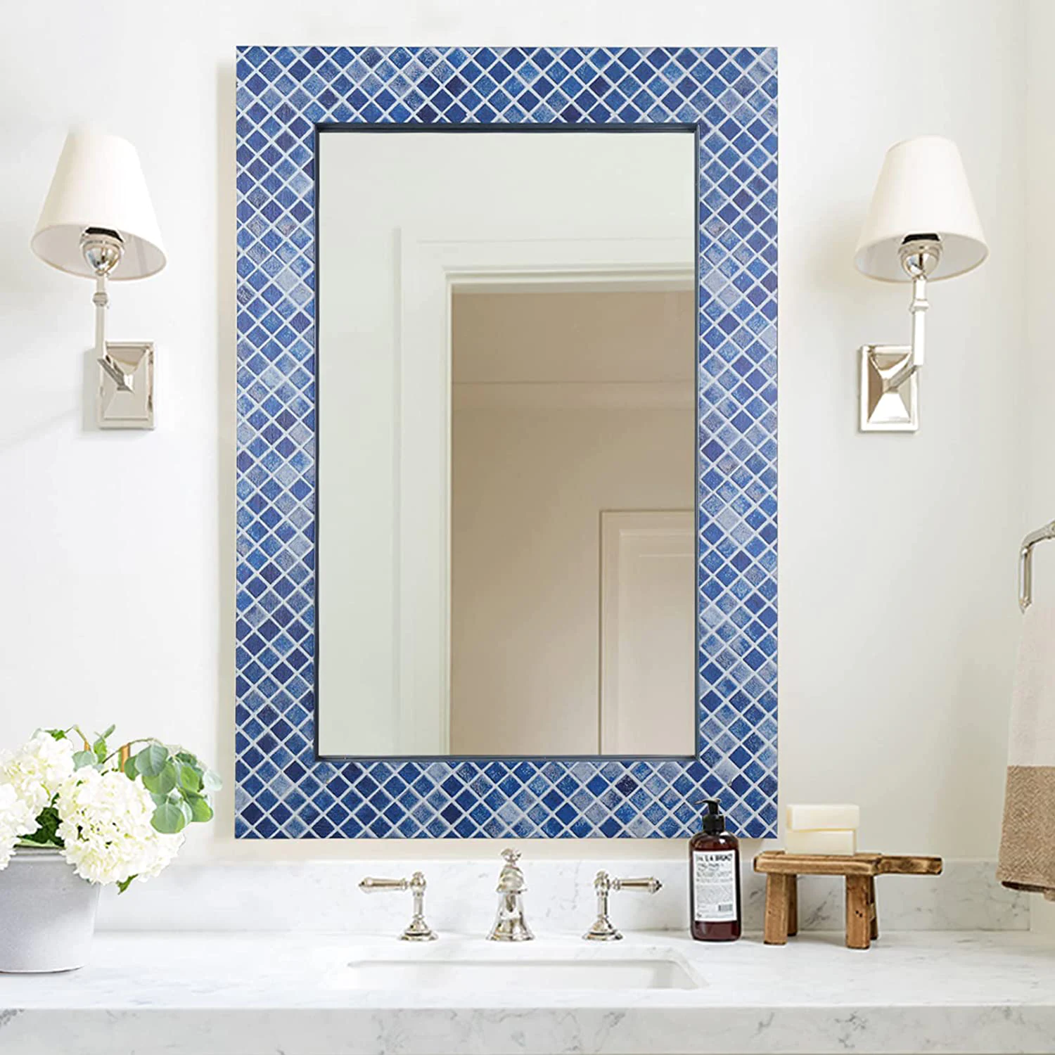 Classic transparent mirror with a matte exterior and a high gloss metallic blue border, allowing you to break the rules of reality and explore yourself.