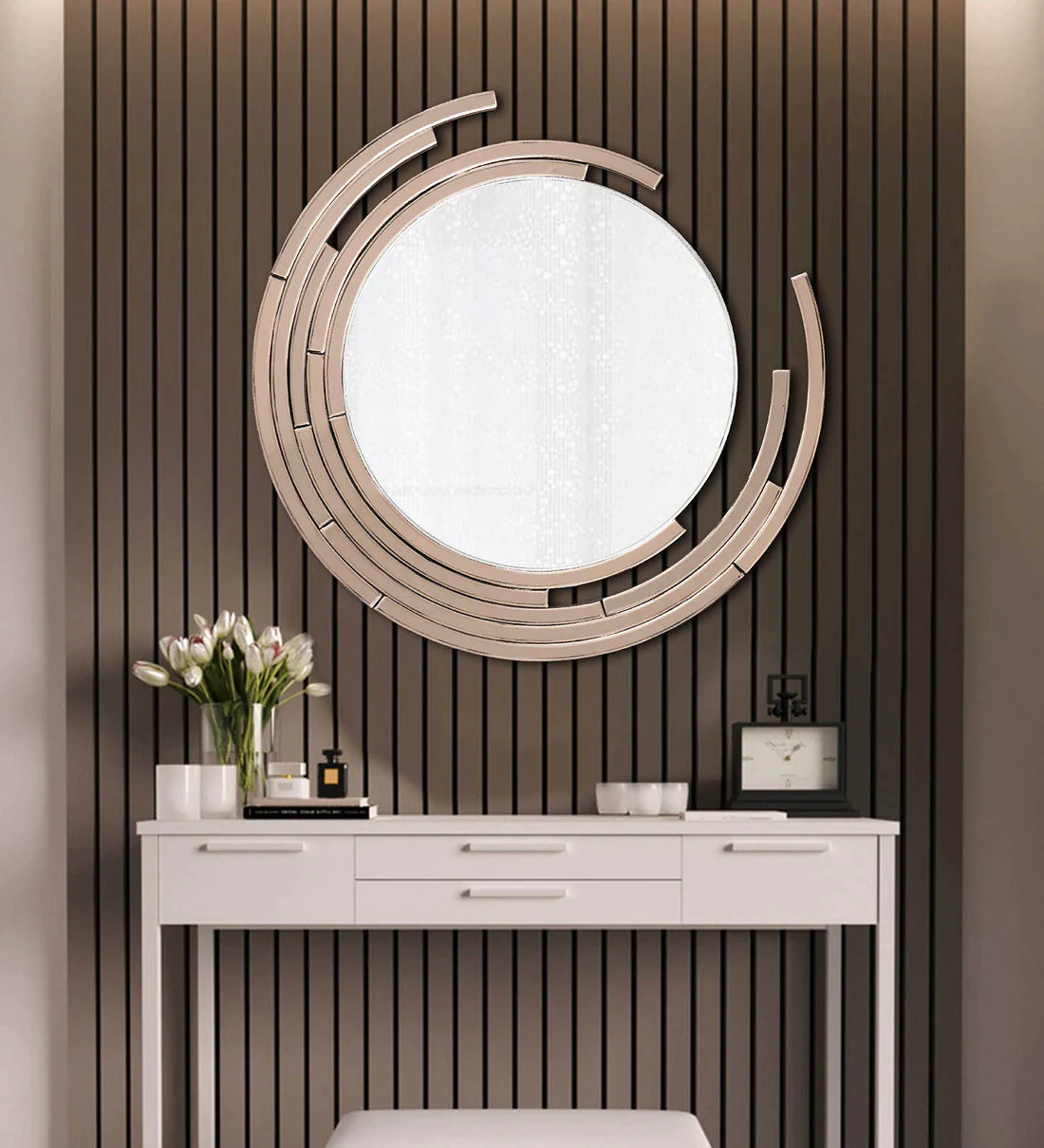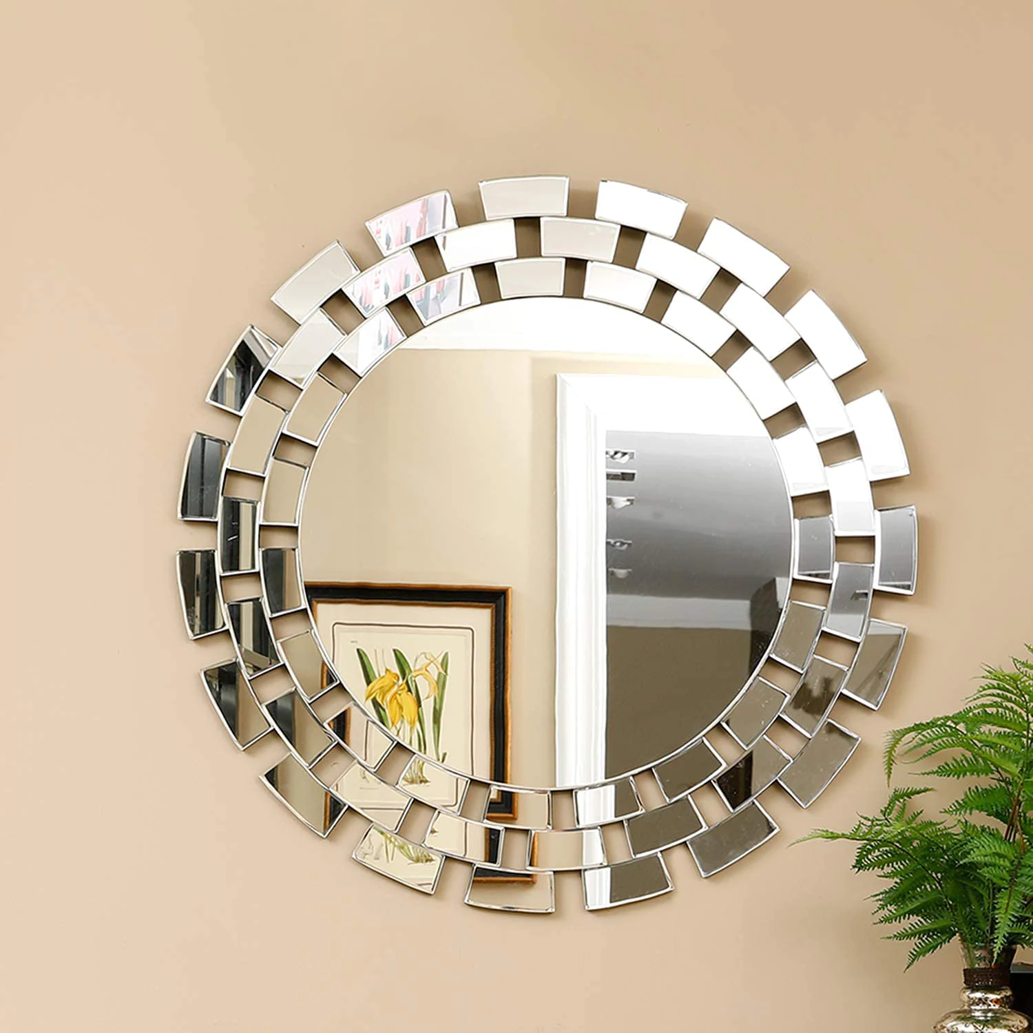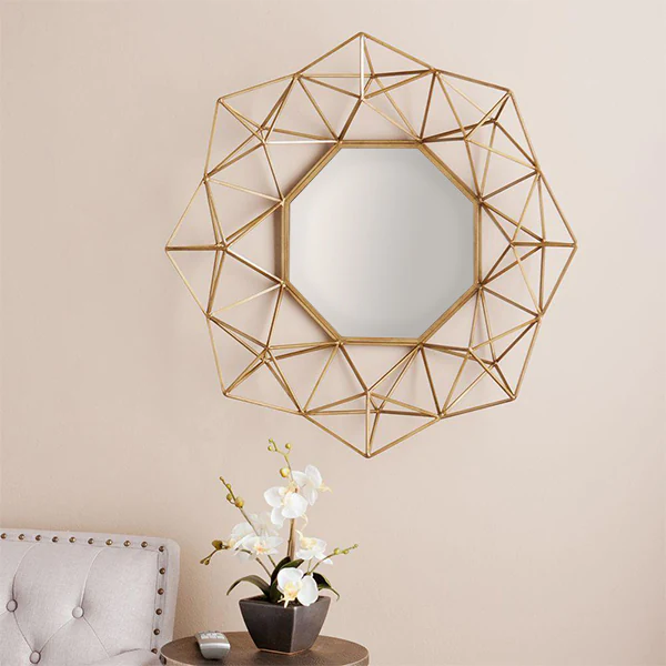 This trendy round mirror with its smart design is joined to abstract handcrafted mirror pieces and is an amazing idea for adding a burst of modernity to any pale wall.