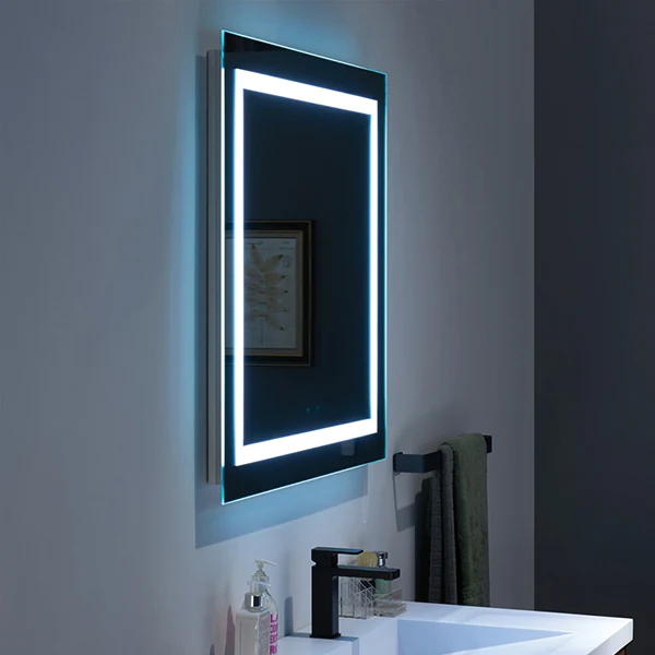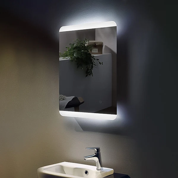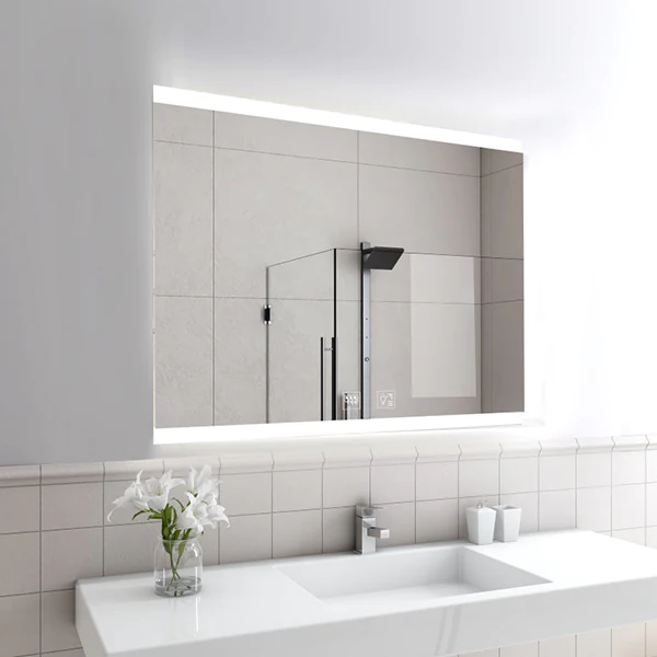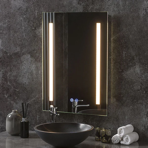 A stunning rectangular mirror with Led stripes on the edges, offers a simple, ornamental statement to the walls and creates a modern soft appeal that is ideal for a fresh room.