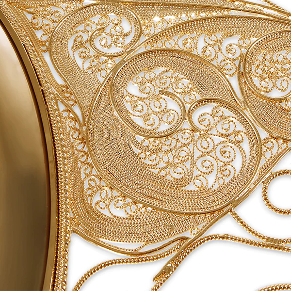 Tiny golden hands on this magnificent piece of décor signify inner strength, control, and power. It is crafted by swirling over 200 brass hands around a round mirror which is meticulously polished one by one.
