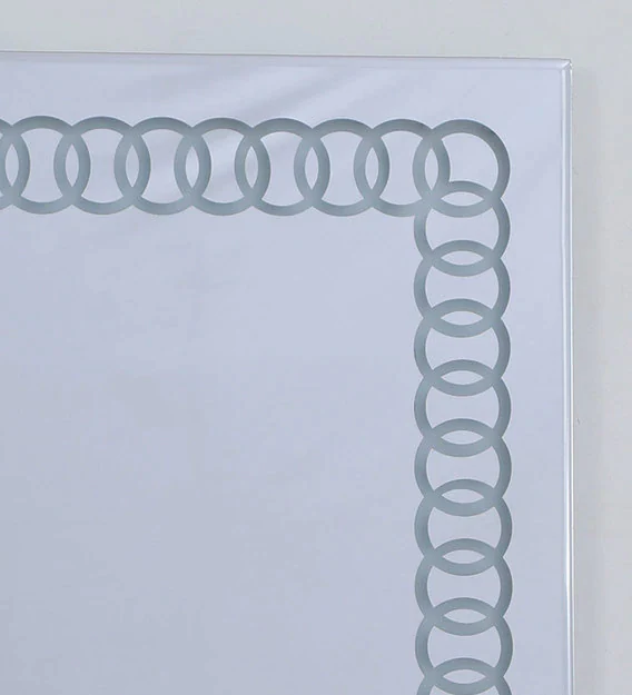 Symmetrical motifs carved on a 5 mm plain mirror simply lifts the appearance of the mirror, bring a soft delicate feel to the interiors, and are perfect for people who believe in the timelessness of elegance.