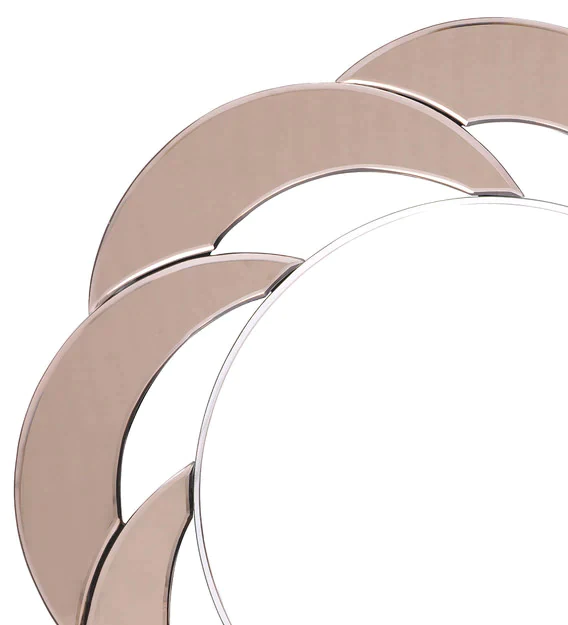 A magnificent round mirror with stunning hand-carved floral mirror petals. The blush-colored flower and delicate pattern add liveliness to modern interiors.